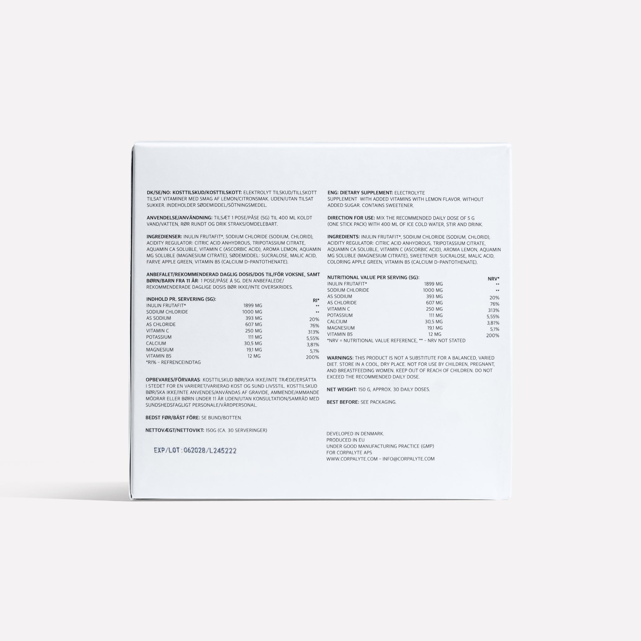 Corpalyte is a Scandinavian brand produced in the EU under GMP, ISO, and HACCP certifications.